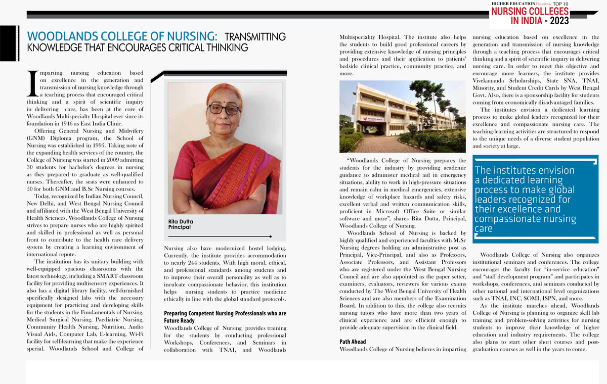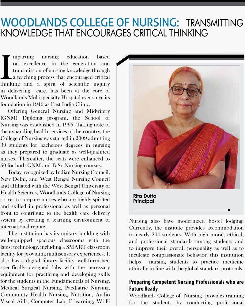 Clinical Experience :The students are provided with opportunities for gaining experience through supervised clinical practice in Woodlands Multispecialty Hospital Limited which is the Parent Hospital as well as other Affiliated Hospitals.